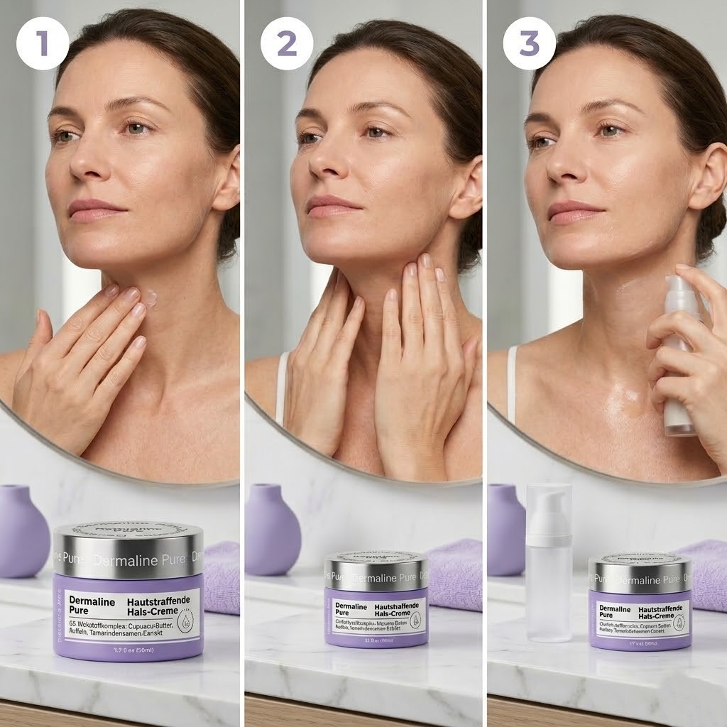 Habe früher immer hunderte Euro in der Apotheke gelassen für meine tiefen Halsfalten. Hat alles nichts gebracht auf Dauer. Dermaline Pure ist die erste Creme, wo ich wirklich das Gefühl habe, die Haut saugt das richtig auf!!! Das Allerbeste für mich: Sie klebt absolut null!! Ich trage gerne mal einen dünnen Schal und hasse es, wenn die teure Creme Flecken auf der Seide macht.. das passiert hier gar nicht. Bin 66 und erwarte keine Wunder mehr, aber das ist ein richtig solides Produkt für unser Alter.